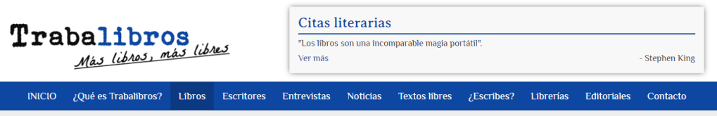 Trabalibros es un proyecto impulsado por la ilusión de un grupo de personas que comparten la pasión por la lectura y la escritura. ¿QUÉ TE OFRECE TRABALIBROS? – La posibilidad de consultar información sobre libros (reseñas, noticias, novedades…). – Una página en blanco a la que añadir tus propias reseñas y/o textos de libre creación. – Un almacén dinámico de ideas en el que encontrar inspiración. – Y sobre todo un juego y un viaje que te permitirán, partiendo de un solo libro, crear las más inverosímiles y sorprendentes rutas literarias.